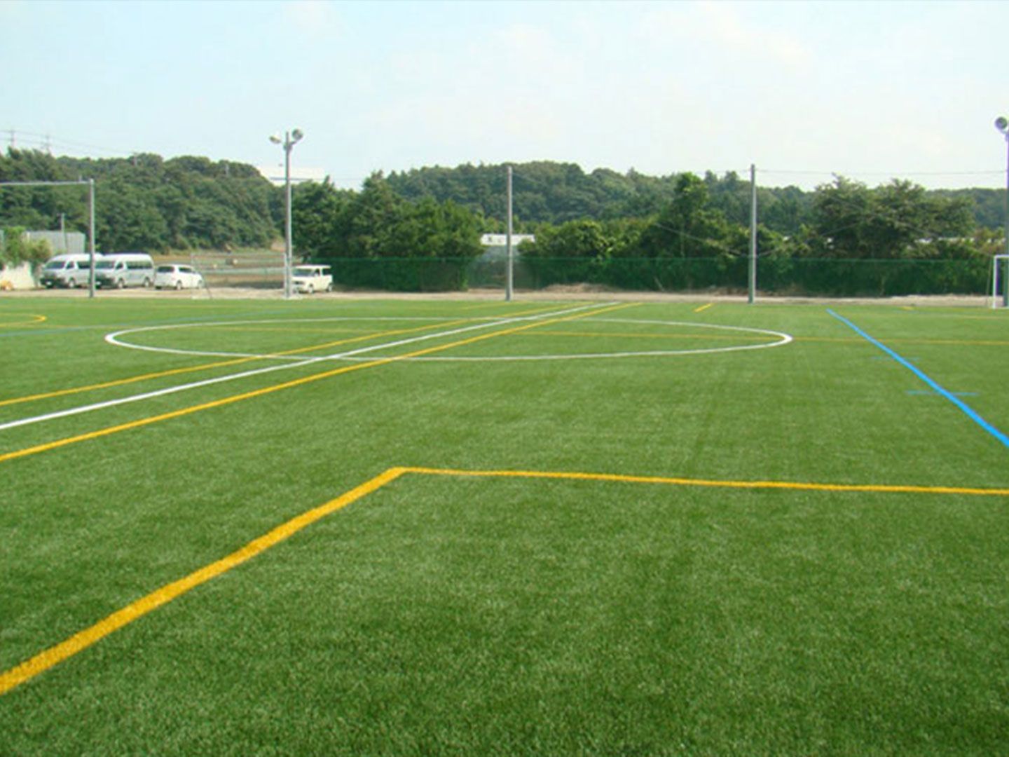 施設紹介 | フルコート1面(70m×53m) ハーフコート2面(53m×33m) フットサルコート2面(40m×20m) ※ナイター設備あり |
